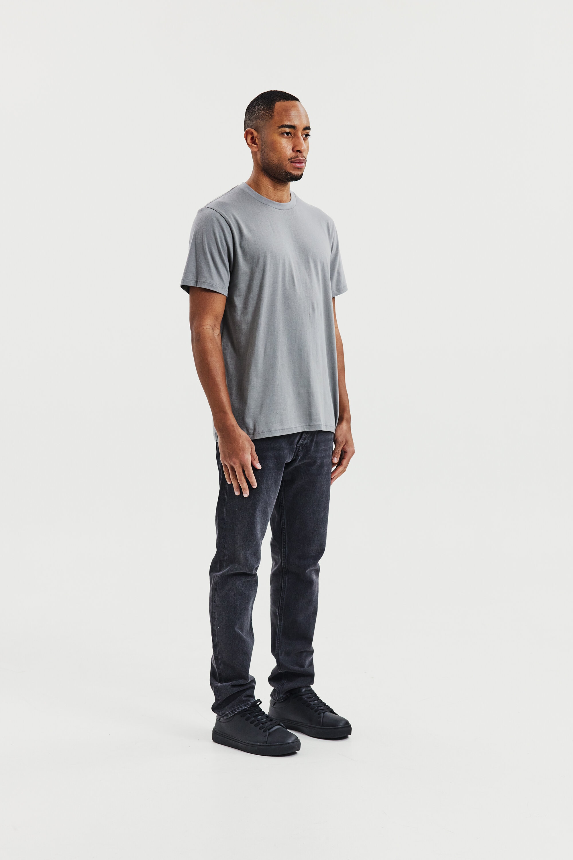 Perfect for layering, this ultra-light T-shirt is crafted from 150 GSM single jersey for a soft, breathable feel. Designed with a regular, slightly relaxed fit and a ribbed neckline, it’s ideal for wearing under a shirt or sweater.