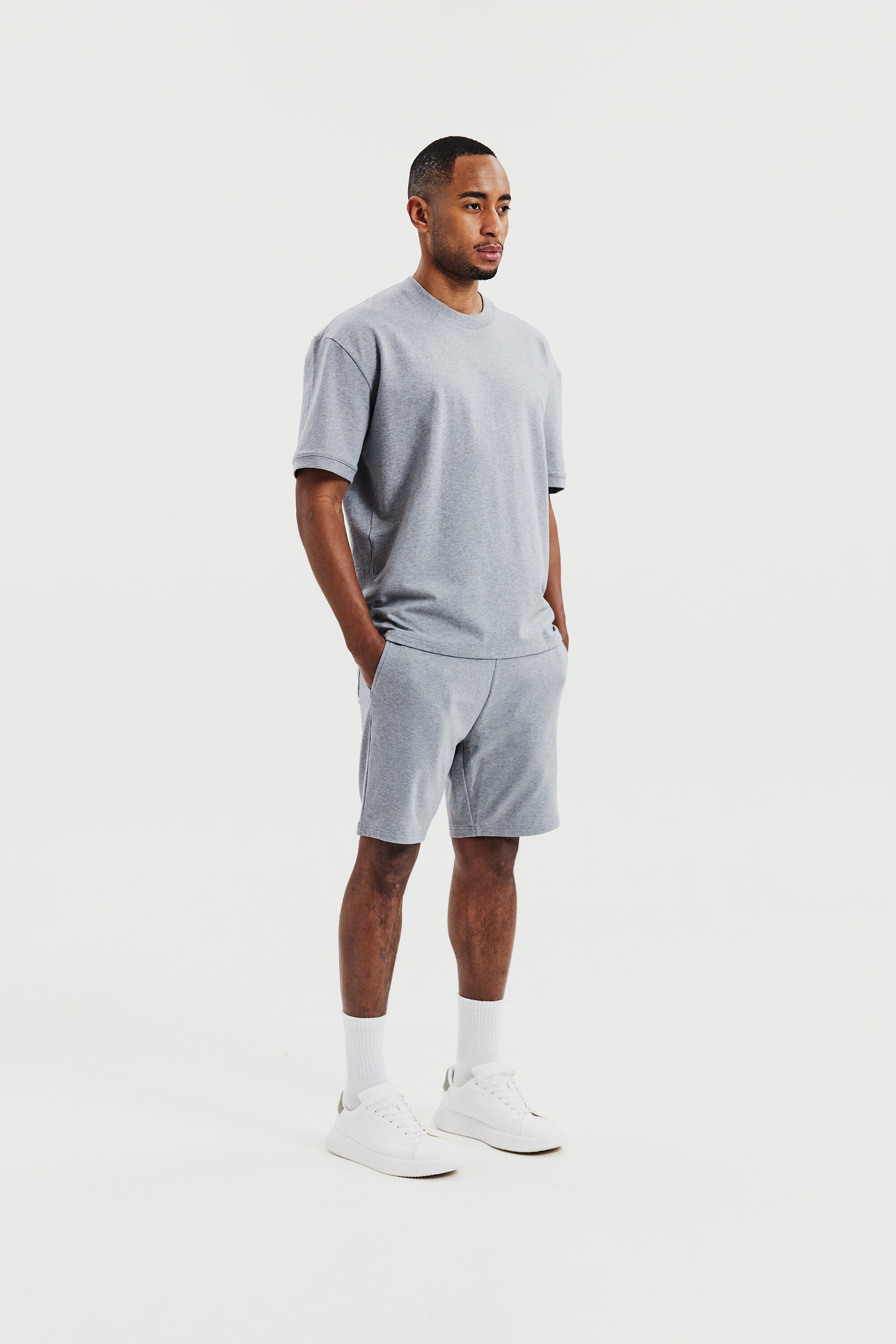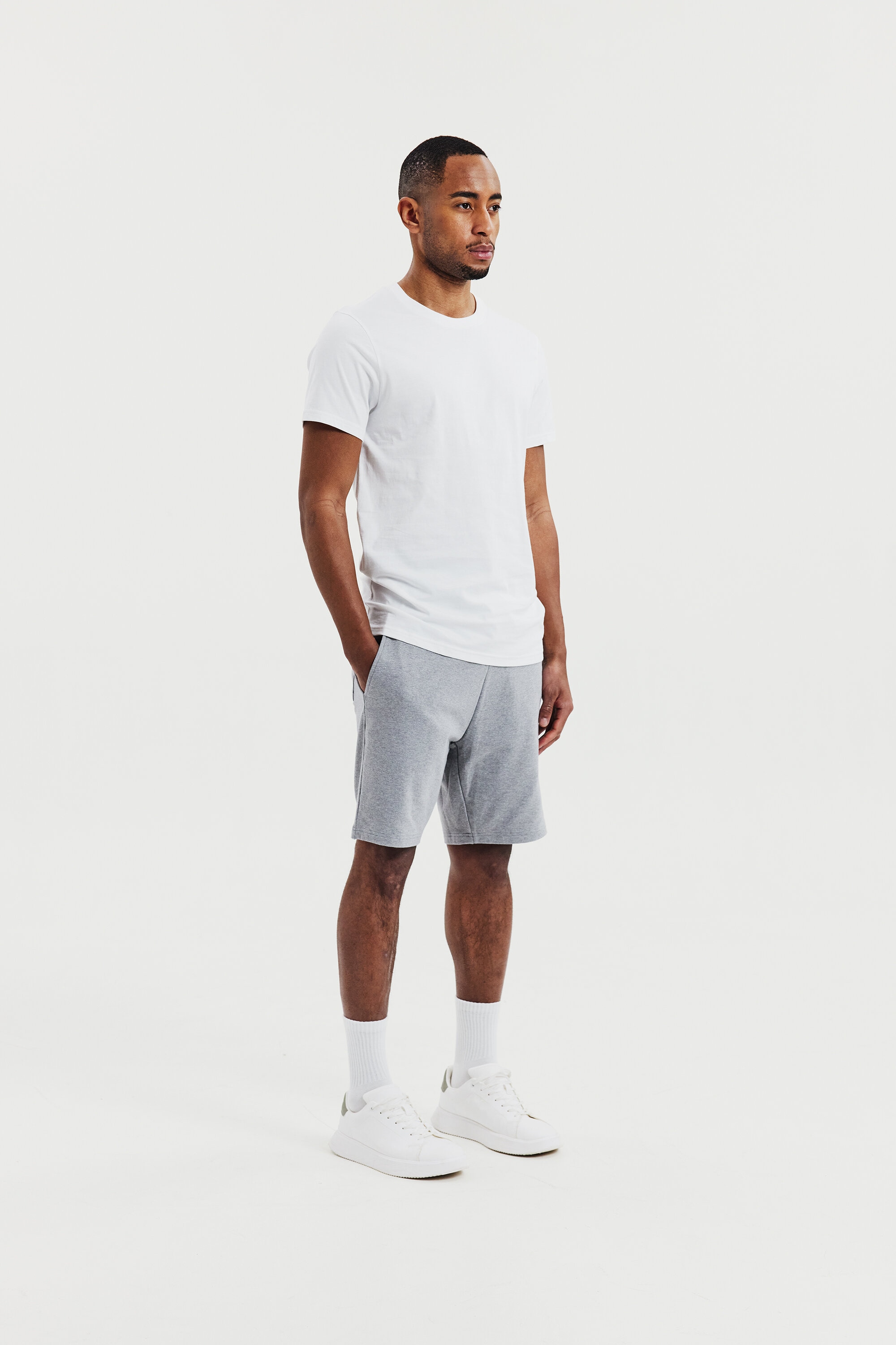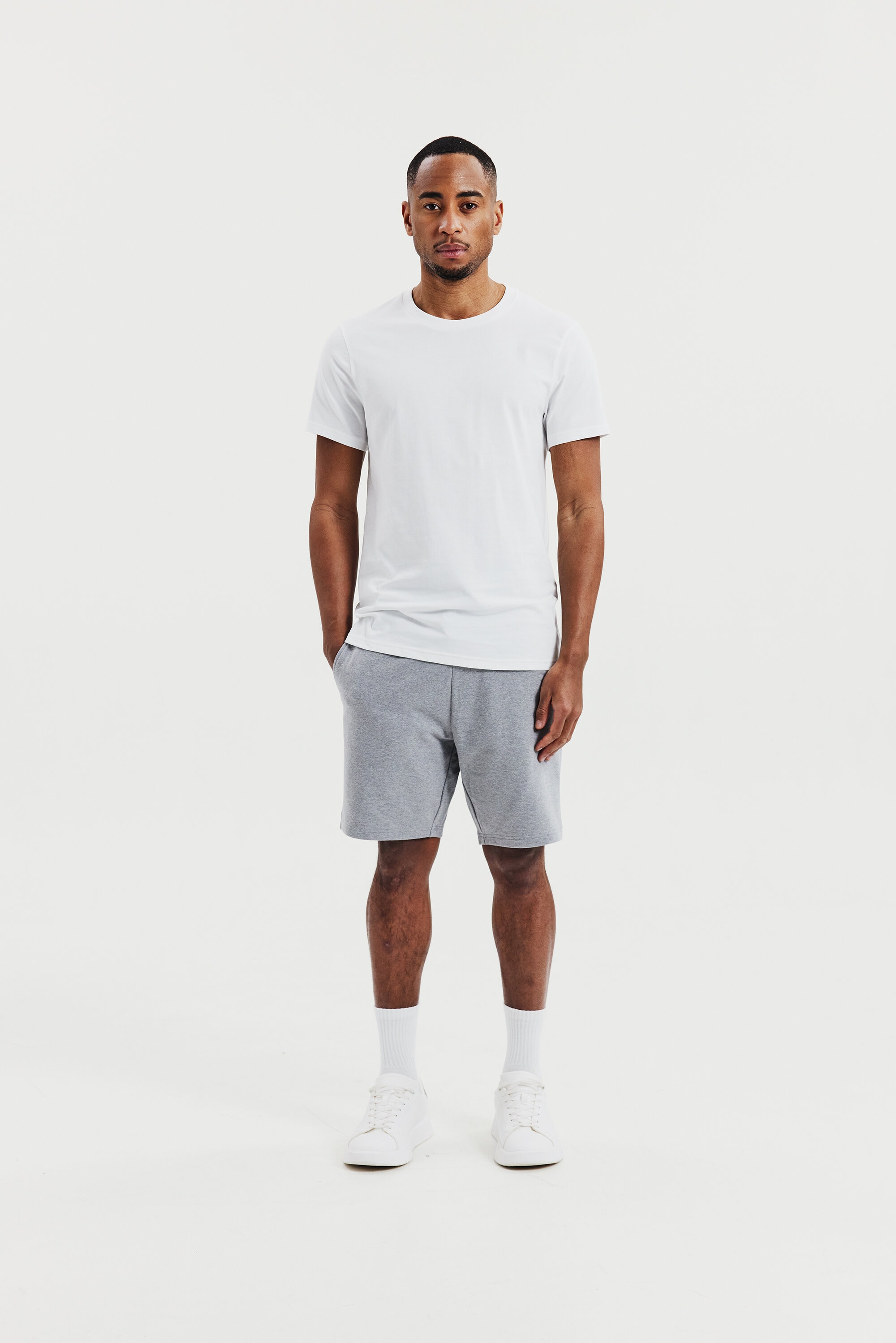 Versatile Lounge Shorts in soft organic cotton with added stretch for extra comfort. The characteristic looped inside makes the fabric soft and airy. Minimalistic, slim cut that stops just above the knee. Ribbed waistband with a drawstring and inset grommets. Slanted front pockets and a patch pocket on the backside. Great both as loungewear or as stylish shorts.