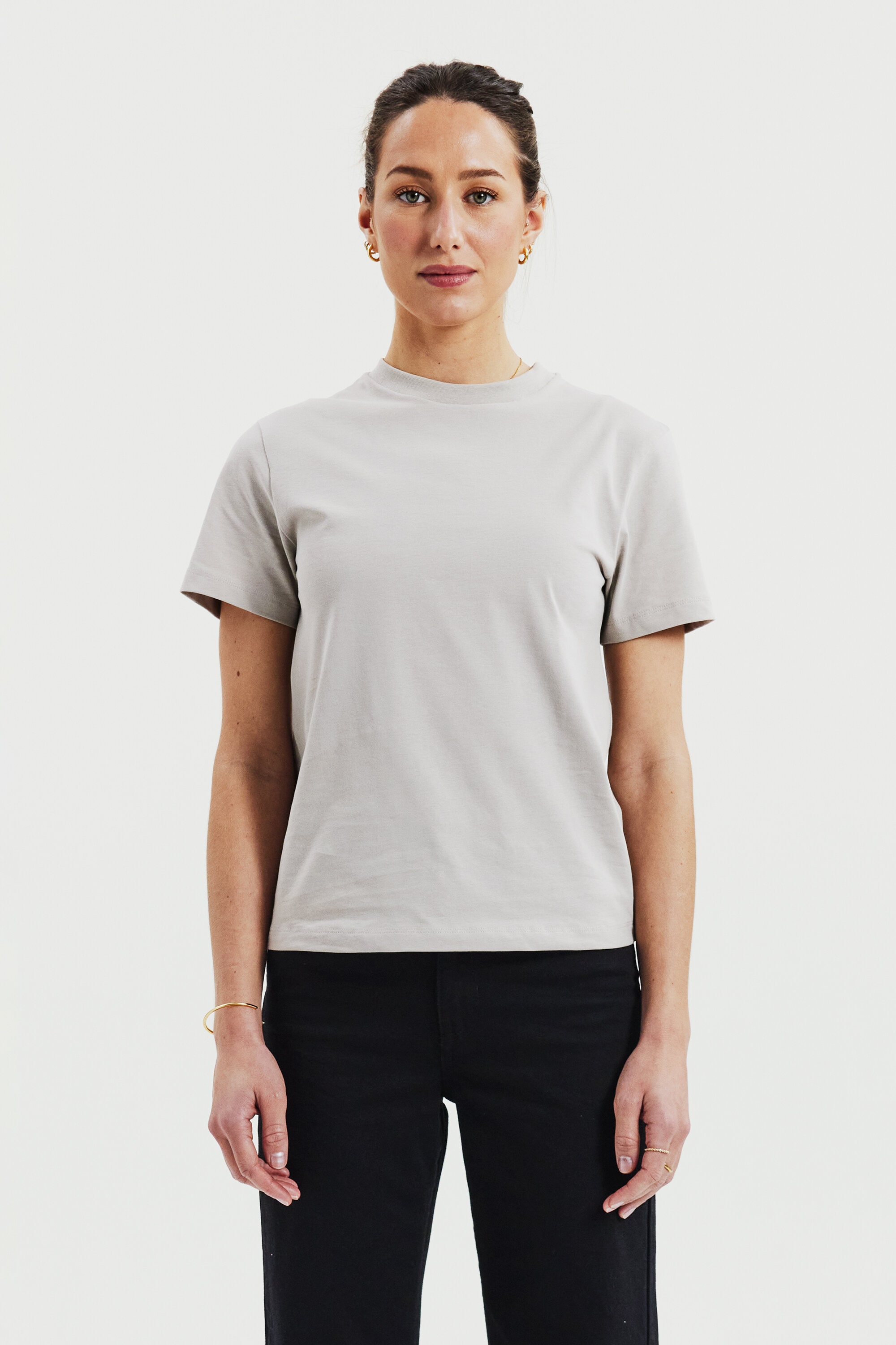 Experience the luxurious feel of our heavy viscose jersey fabric with its exquisite drape. The boxy fit and side slits provide exceptional comfort. The combination of this premium fabric and contemporary cut gives our T-shirt an updated and elegant look that is truly remarkable.