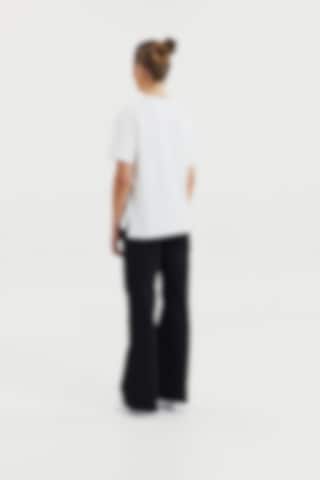 Experience the luxurious feel of our heavy viscose jersey fabric with its exquisite drape. The boxy fit and side slits provide exceptional comfort. The combination of this premium fabric and contemporary cut gives our T-shirt an updated and elegant look that is truly remarkable.