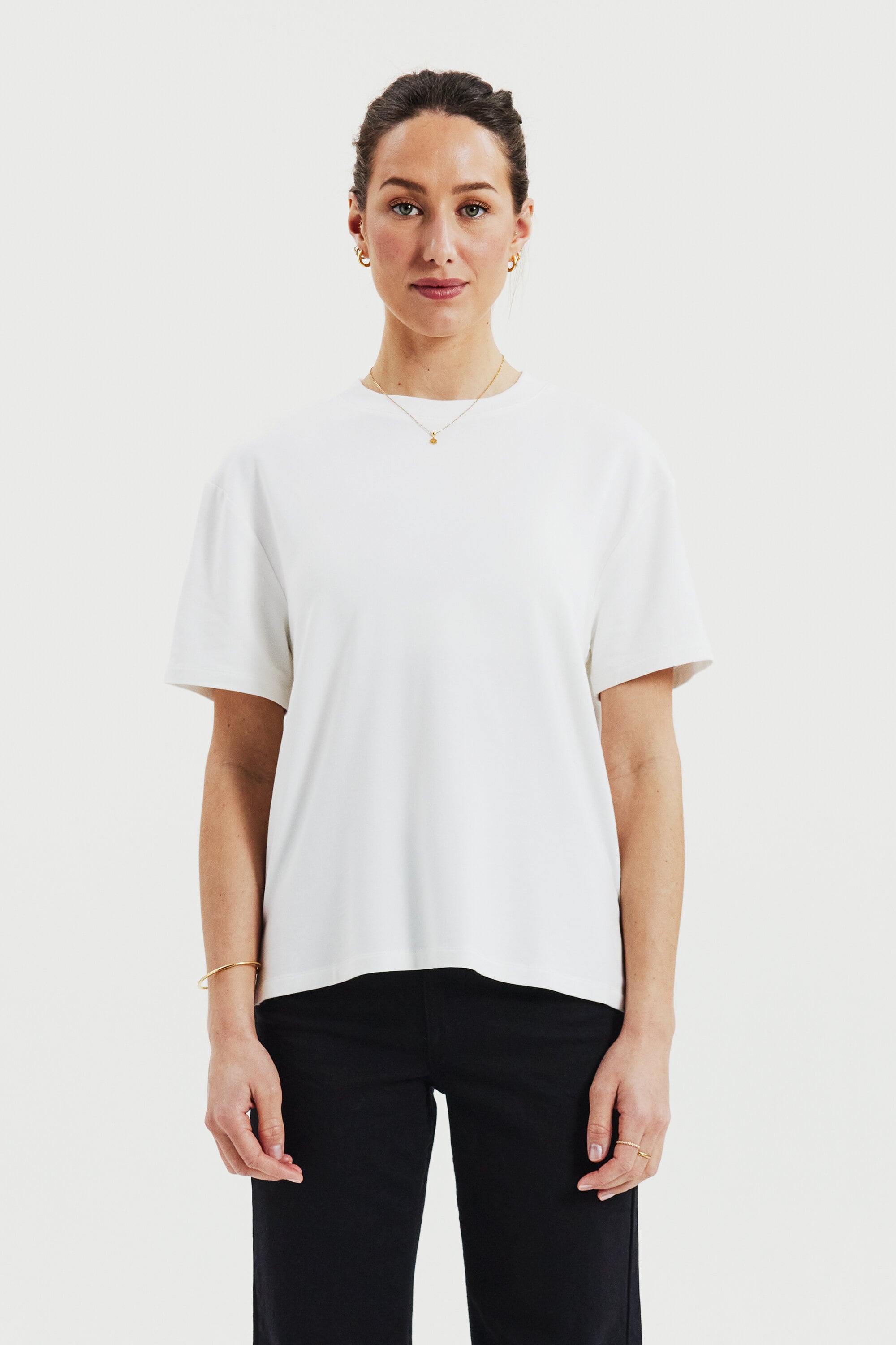 Immerse yourself in the luxurious sensation of our soft heavyweight jersey fabric, cherished for its exceptional drape. The relaxed fit of this top ensures unparalleled comfort, enabling effortless movement. With its fusion of premium fabric and contemporary cut, this piece radiates a refined and modern elegance.