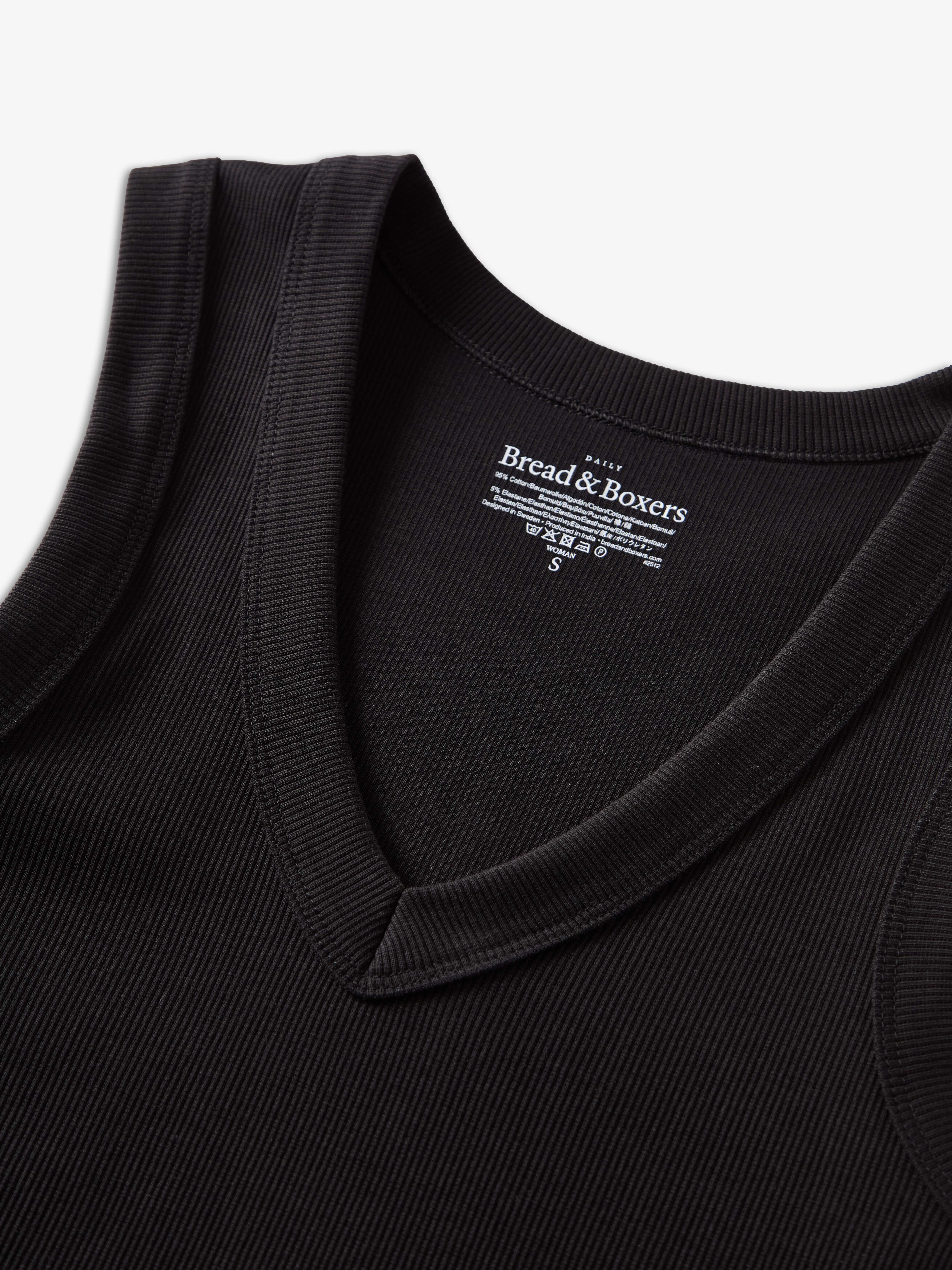 Ribbed tank top for women with a deep V-neckline. Made from a soft ribbed fabric in 95% cotton and 5% elastane for a comfortable, flexible fit. The deep V-neck and wide bindings create a clean, structured look, while the slim silhouette makes this tank top perfect for layering or wearing on its own on warmer days. A simple and timeless cotton tank top designed to become a staple in your everyday wardrobe.